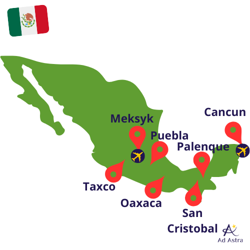 - przelot na trasie Warszawa –Miasto Meksyk i Cancun – Warszawa (z przesiadkami)